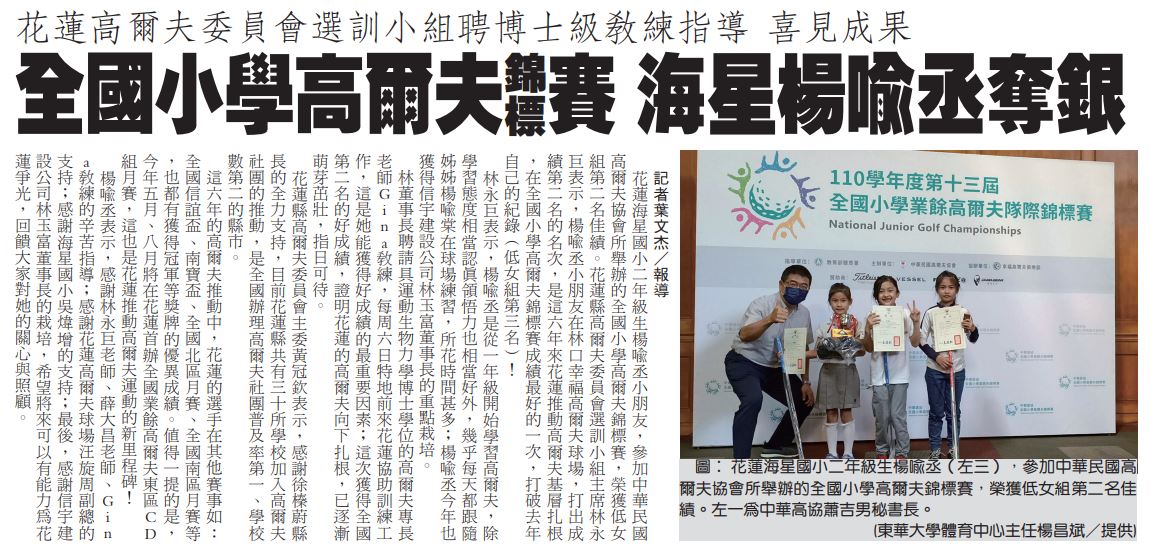 第13屆全國小學高爾夫錦標賽海星楊喻丞奪銀